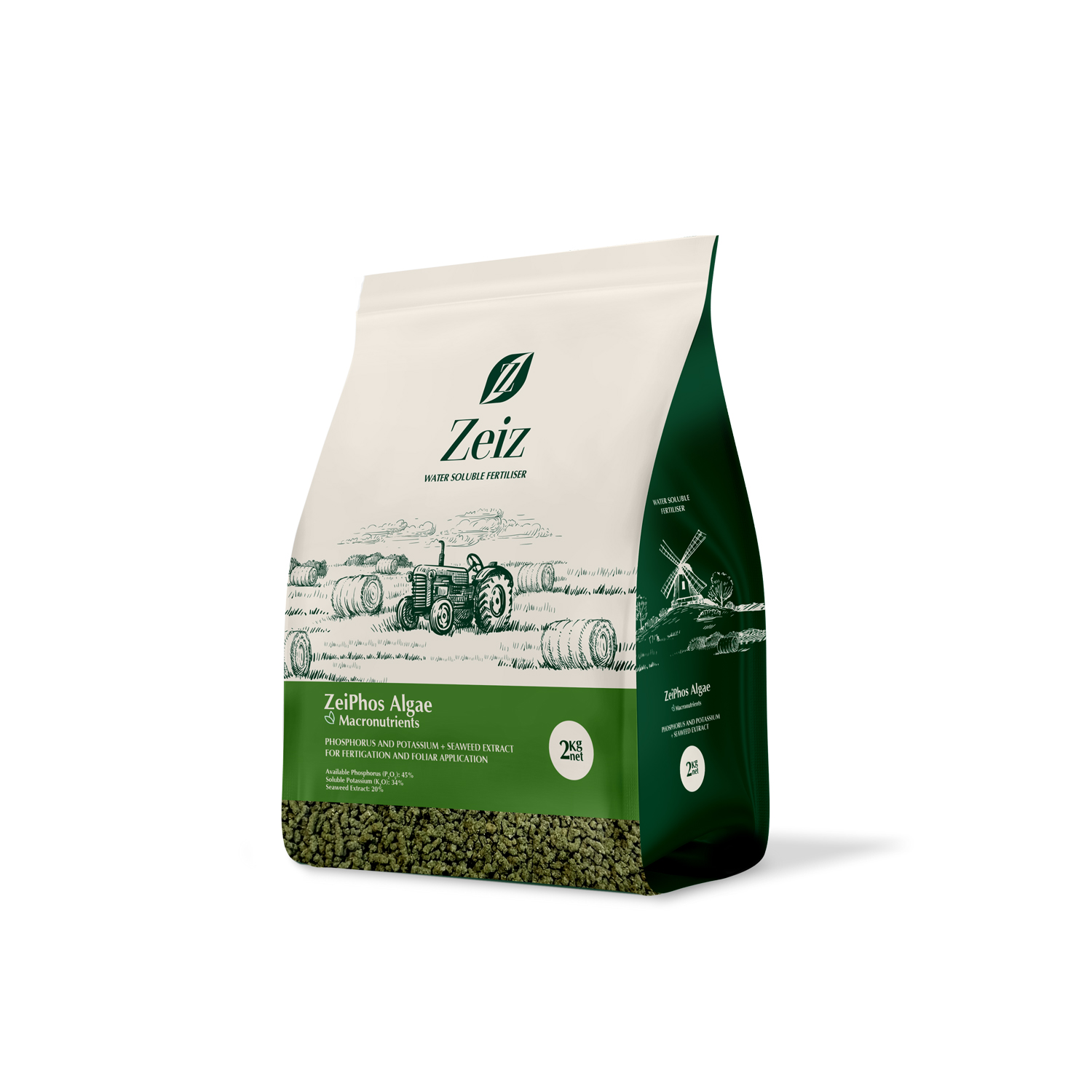 ZeiPhos Algae هو سماد حبيبي دقيق عالي الفعالية وسريع الذوبان، ويتكون من فوسفات أحادي البوتاسيوم ومستخلص الأعشاب البحرية من Ascophyllum nodosum. يتم استخلاص مستخلص الأعشاب البحرية من عملية إنزيمية غنية بحمض الألجينيك، في حين يتم الحصول على فوسفات أحادي البوتاسيوم من مصادر نباتية. تؤدي تقنية الاستخلاص المتفوقة لـ ZeiPhos Algae إلى حدوث إذابة متفجرة عند ملامستها للماء، ولها شكل جرعة فريد ورائحة الأعشاب البحرية الغنية. يمكن استخدامه في جميع مراحل نمو النبات، مما يعزز الإنبات وتوسع الأوراق والإزهار والتجذير ومقاومة الصقيع والتشبع بالمياه ومقاومة الأمراض، من بين فوائد أخرى.
